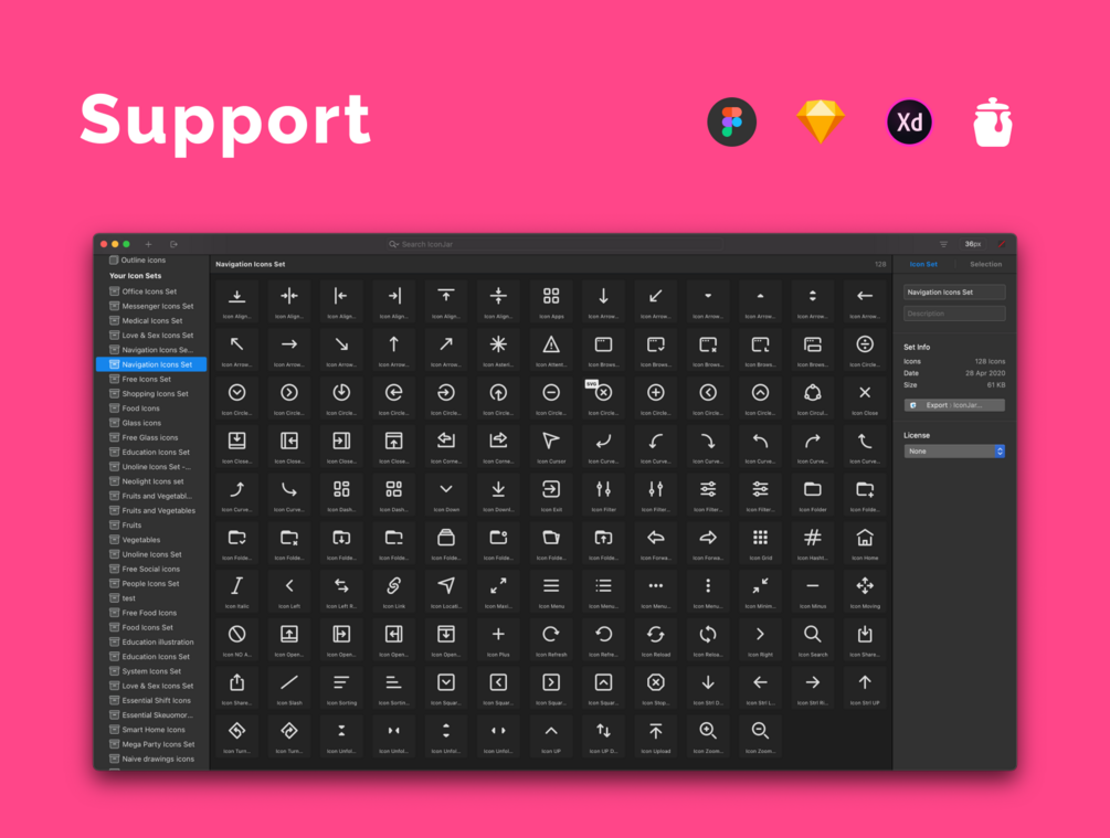 Figma, Sketch, Illustrator, Adobe XD, IconJar